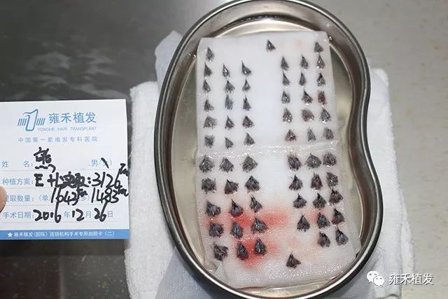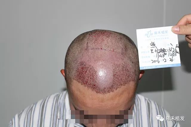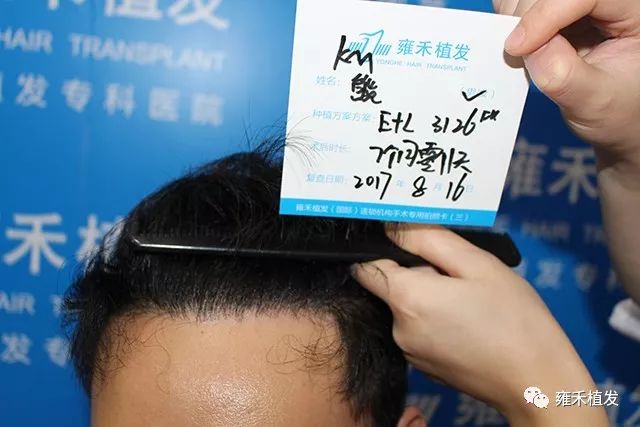 2016年12月26日,昆明雍禾为熊先生种植3126单位,含单根头发的毛囊单位1643,含多根头发的毛囊单位1483,本来术前预估种植2600,结果多取种526。对了,这是两种技术套种的植发,三分之一是FUE-APL2.0,三分之二是LATTICE,主要是他的头顶稀疏区比例大,这才用了更多的点阵加密技术,属精端种植,见缝插针,不伤害原有头发。