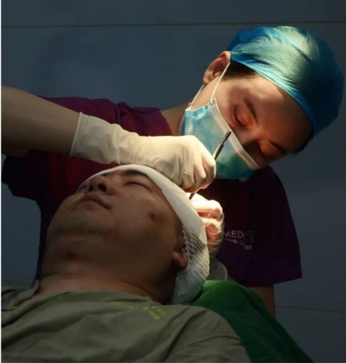 王帅植发手术中。