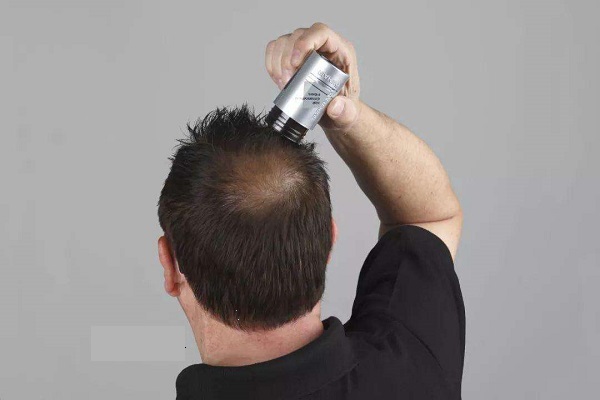 2。打开罐子, 在头上7.5到15公分高的地方,对准要使用的地方,轻轻摇晃生发纤维,让纤维滑落到头发上。然后用手轻拍,帮助纤维散开附着。