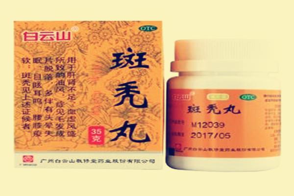 斑秃丸是治疗斑秃的专用特效药。斑秃主要病机为血虚不能营养毛发,或风盛血燥,使毛发失荣而脱,故有黄芪、当归,熟地、女贞子、制首乌、枸杞子、桑椹子等药材制成的斑秃丸内服能滋阴养血、补益肝肾,阴血充盈,燥风自熄,毛发得养。本病常与精神紧张,劳心伤神有关,用茯神、枣仁、枸杞养心宁心神。外用参、芪、丹参补益气血,干姜、当归、桃仁、红花温通经脉、活血化瘀,刺激皮肤,改善头部皮肤营养,促进毛发生长。补骨脂对秃发有良效。全方合用有补肾活血生发的作用。