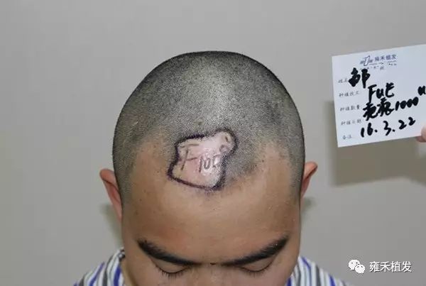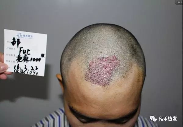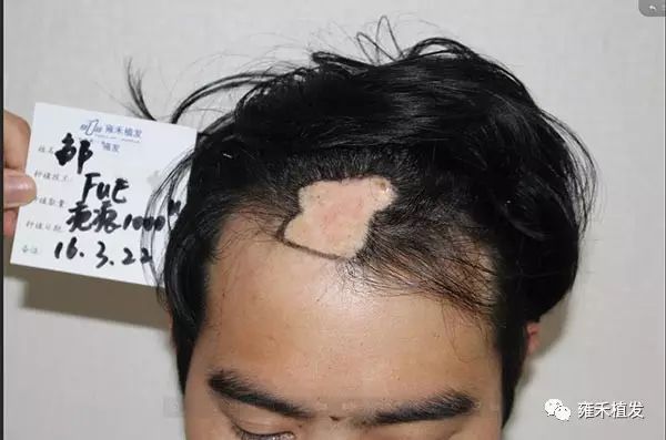 2016年3月22日,福州雍禾采用FUE为邹先生的疤痕处种植1090单位,本来术前预估种植1000单位,结果多取种90单位。疤痕得有一馒头大吧,再加上疤痕植发的成活率偏低,种植1090单位算不上多。FUE一单位10元,1090单位就是10900元,也就是1万元吧。