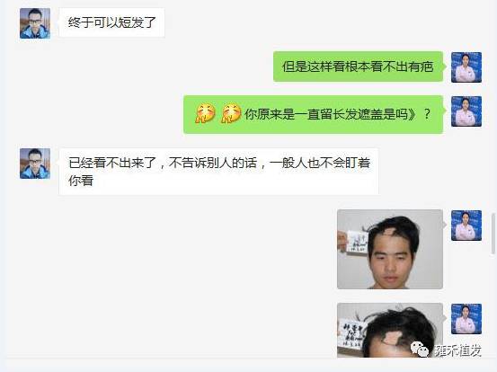 再说雍禾的手术发友邹先生,术后半年原来的疤痕处已经是黑头发,再过一段时间黑头发更是浓密,人变得年轻了。以前,他老是蓄长发遮掩疤痕,现在可以放心地留短发了,即使短发也看不到疤痕的。因为自己的好效果,他推荐单位领导来雍禾植发种头发,结果也是效果蛮不错的。口碑的力量啊。