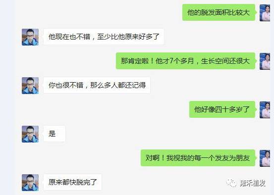 (这是雍禾的一个手术发友,他的脱发与上图电影中王桂香的脱发看着一样大吧。)