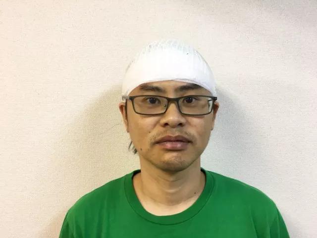 手术结束之后,中泽让护士给自己的前额拍摄了一张照片,他说当时看到这张照片的时候感觉好像是恐怖电影里的场景,因为血珠一直在从他的头顶渗出来,感觉有点儿吓人。