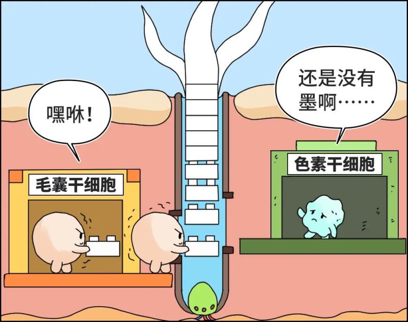 在毛囊家族中有两员大将,负责毛发生长的叫毛囊干细胞,给头发上色的叫色素干细胞。
