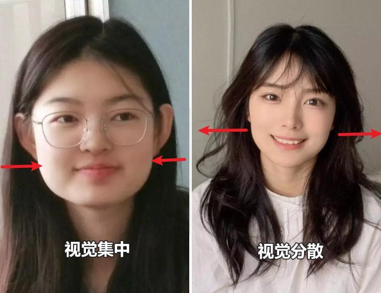 它会显得我们的头非常大,如果你的脸部比较圆润的话,看上去就会非常土气。比如左边圆润的脸型加上泡面卷显得下半张脸非常大很不和谐。若是你的脸比较瘦长,这个发型会相对来说比较适合,不过也需要注意避开中分的发型,选择斜分会更好。对比看一下效果: