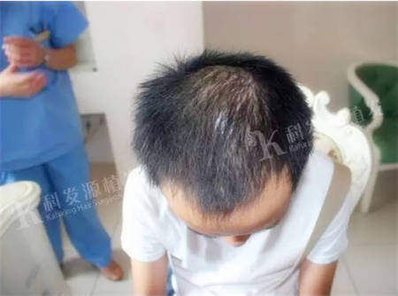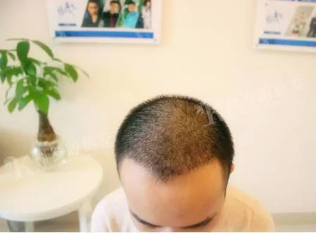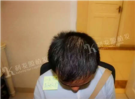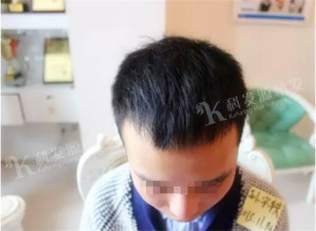 这是术前孙先生头发的顶部,不但发际线过高,而且头发稀疏的很明显