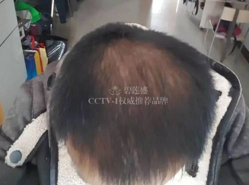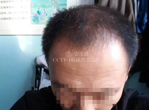 乔先生到碧莲盛检测后得知:脱发五级,额角及发际线毛囊已经闭合,核心区、头顶、发旋稀疏明显,且原生发退化严重(头顶还有小头发,但是部分已经退化严重,如果用药是可以保持现状,但让这些小头发重新长成头发的可能性微小)。