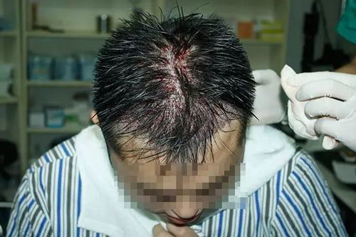 (术后当天的种植区,前面发际正中往上的稀疏区也加密了。)