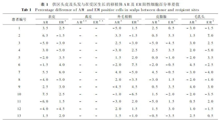 结果显示,后枕部区域毛囊被移植到脱发区时,它的毛乳头并未检测到性激素受体有变化,真皮层中都未检测到AR和ER,这意味着它仍然不会受到DHT的影响。