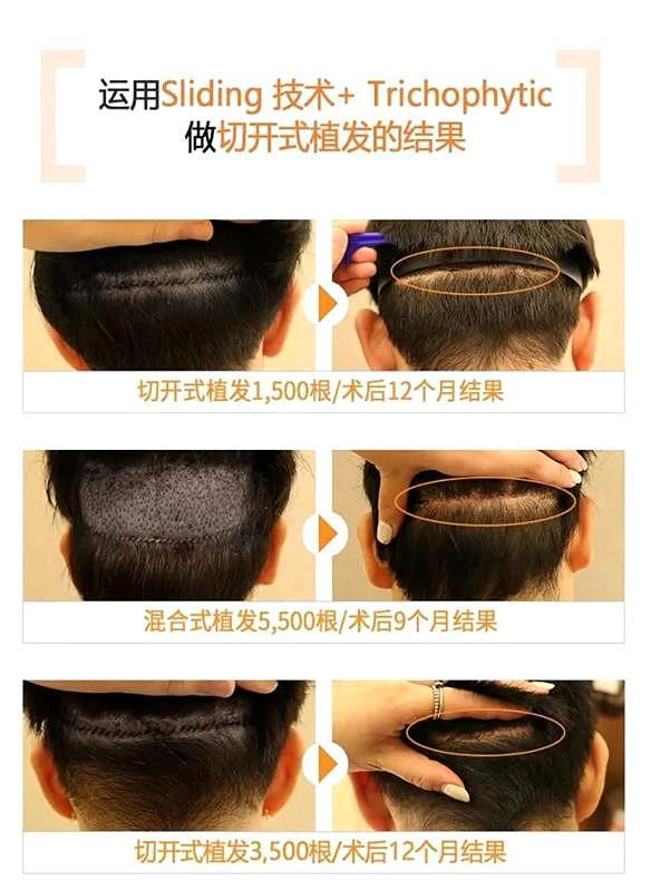 适用范围:这种方法适合绝大多数人,有极少数人的头皮非常紧,弹性差,只适合做很窄的头皮切取,否则术后瘢痕会很宽,这种患者更适合做FUE技术。