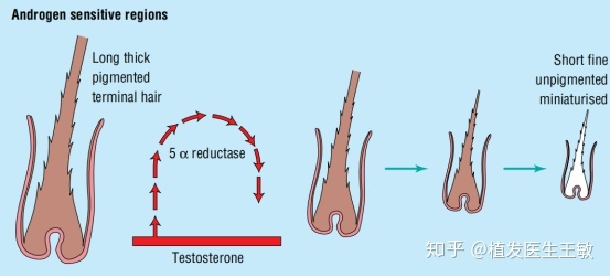 常见于遗传的,年轻的,男性脱发患者,由于体内雄激素受体一直处于高敏状态,原生发头发脱落,导致术后效果不佳。(术前术后都用药)