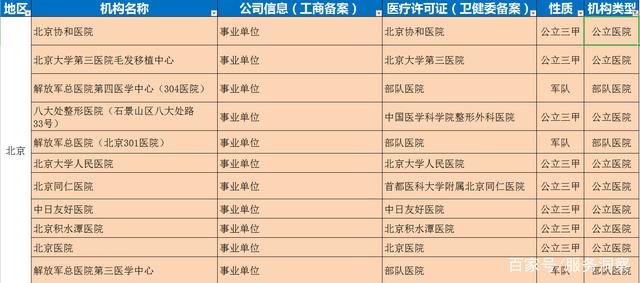北京市公立医院植发 卫健委信息备案(部队医院不展示):