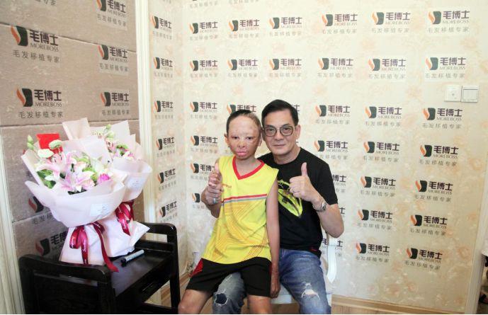 重度烧伤孩植发牵动俩明星心2015年12月,漳州市芗城区金峰村一出租房发生液化气热水器爆炸,时年10岁的小雄(化名)身上重度烧伤。去年,小雄找到毛博士美学植发机构接受植发手术。小雄的遭遇让毛博士全体医护人员揪心,为此,机构专门为小雄减免了绝大部分的治疗费用。2017年12月、2018年5月,小雄在毛博士做了两期植发手术。毛博士负责人介绍说,小雄的烧伤情况异常严重,医院组织台湾和大陆知名的植发专家,一起为小雄检查、治疗,克服了面积大、供血差、头皮厚等难题,逐步帮小雄种上头发,目前恢复情况良好,已逐步恢复孩子的自信心。19日上午,国家一级演员、军旅歌唱家、福建省残疾人福利基金会爱心大使赵秀兰和香港演员李国麟分别来到毛博士,专门前来看望小雄,送上鲜花、文具和慰问金。在TVB连续剧《天龙八部》里饰演鸠摩智的香港著名演员李国麟,不断鼓励小雄,“多努力,读好书;多运动,强壮身体;头发的问题,交给毛博士。”李国麟还饶有兴趣地体验了毛博士的养发护发等项目。