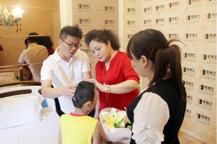 国家一级演员、福建省残疾人福利基金会爱心大使赵秀兰和香港演员李国麟还专程来到毛博士,看望重度烧伤正在接受植发治疗的男孩,送上鲜花、文具和慰问金。