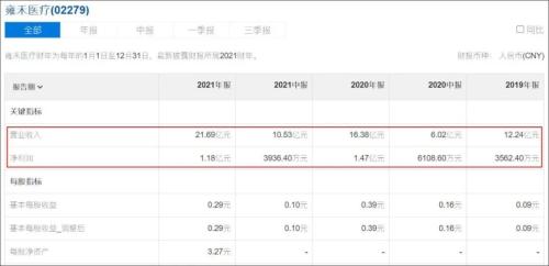 4月27日,雍禾医疗(02279.HK)官网正式发布上市后第一份年报显示,2021年实现营收人民币21.69亿元,同比增长32.4%;净利润为1.18亿元,净利润率同比大幅下降26.3%,营收增长与净利润增长呈现背道而驰。