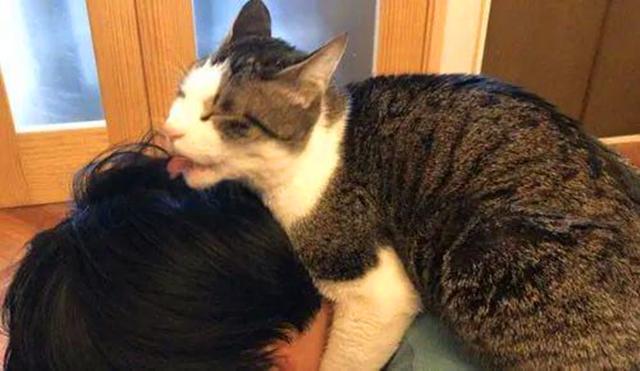 听说这位铲屎官家就有这样的猫,一开始铲屎官就认为猫的这个嗜好特别奇怪,居然会喜欢舔别人的头发,铲屎官还苦恼了一阵子,但是效果却惊为天人。