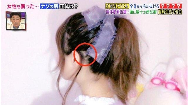 尽管如此,她还是一边隐藏着正在掉发的事实一边进行演唱会活动。4 个月之后,连后脑勺区域也出现了脱发症状!