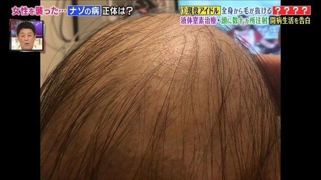 每次去医院都会在头上注射十几处,pippi 说:"; 光是头上打针就很痛。痛也就罢了还会出血。我可以忍耐疼痛,但那是以能痊愈为前提,但每次打完脱发都会不断扩大 ……";