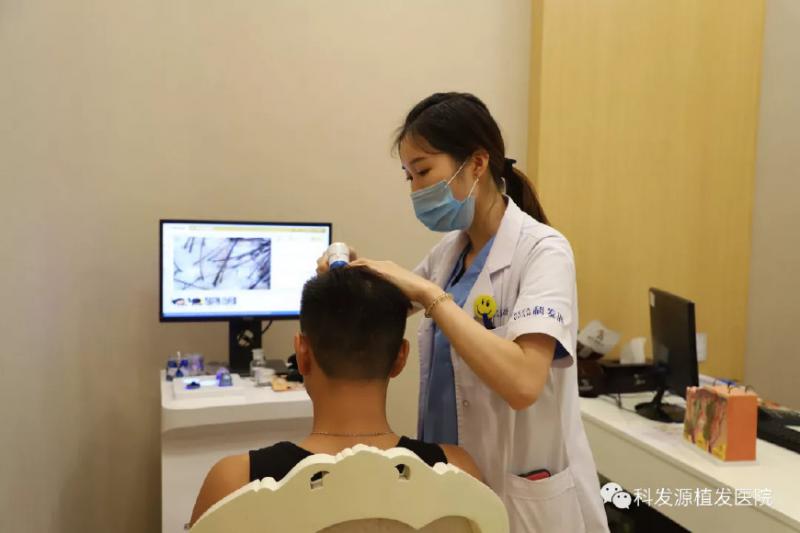 1、去专业的正规的植发医院进行毛囊检测,查看毛囊变小、萎缩程度;确定病因;