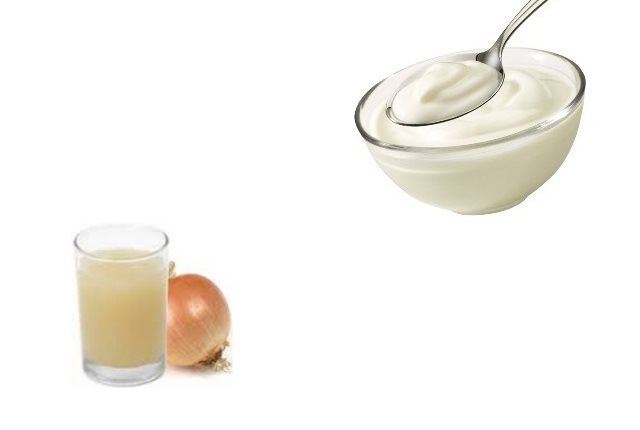 拿一个碗,加入一些新鲜的洋葱汁和两汤匙酸奶。