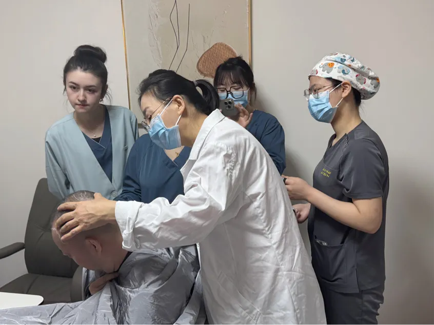陈娟与自治区人民医院医学美容中心毛发团队为脱发患者评估