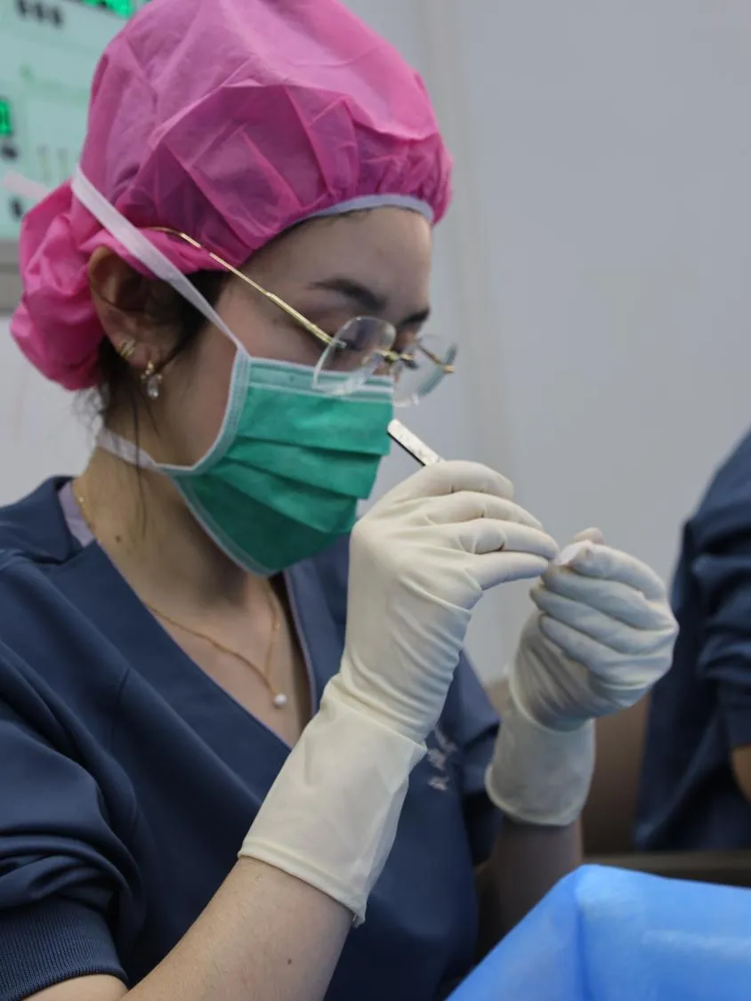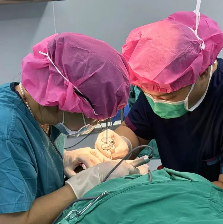 在完善相关术前准备后,陈娟与医学美容中心毛发团队利用FUE无痕种植技术,为两位患者种植毛发。精准地提取毛囊、分离处理毛囊、种植毛囊……为确保毛囊的成活率与植发效果,陈娟和医学美容中心毛发团队全身心投入,确保每一个步骤都严谨且规范。在双方密切的配合下,两台植发手术顺利完成。
