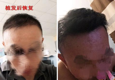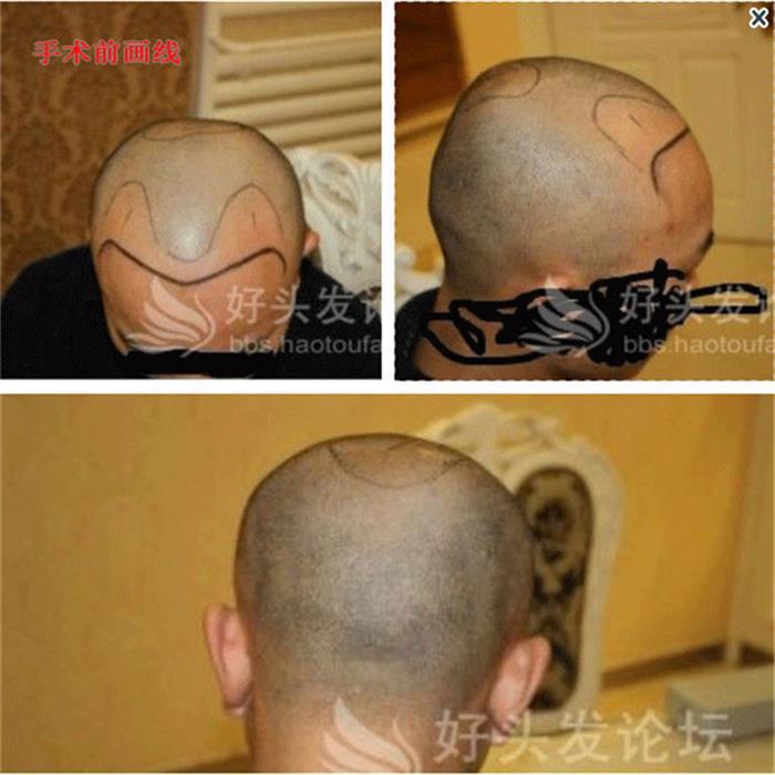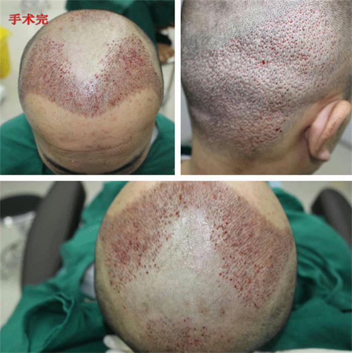 理发是咨询医生给理的,理成了光头,发际线也是她画的,后来主任医生来看了看,就进手术室了。步骤大家应该也清楚,取发,打孔,植发,主任医生给我打了麻药,取发的是另一个女医生,植发的也是别的女医生,麻药对我不大起作用,取发区还行,没大有感觉,但种植区打上的麻药不大管用,大部分的时间都挺疼痛的,医生给我补了好多针,但效果不大,我说别打了我坚持坚持吧,虽然疼,我也不希望手术结束太快,因为慢工出细活啊,给我取发植发的女医生也挺辛苦的,真心感谢她们。一直做到下午6点吧,最后感觉头很沉,像喝多了的感觉。疼痛一直伴随着。