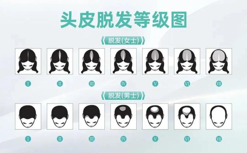 另外,内分泌失调也会导致脱发。在现实当中,很多脱发发友都有家族史,这是因为内分泌失调所致的一种遗传性因素。此外,女性体内雄性激素过多也会导致脱发,所以女性发友一定要注意这个问题。以下是脱发等级判定!