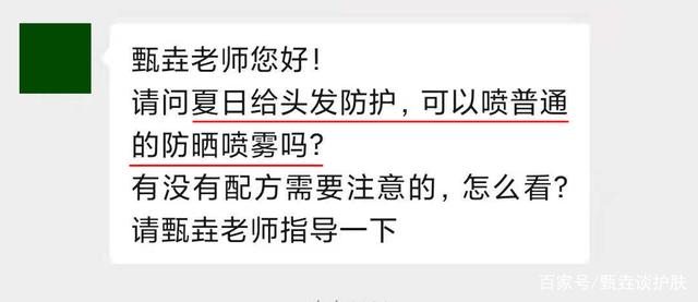 经过多年宣传,消费者对皮肤防晒的重要性认识越来越深刻,应对肌肤防晒的方式越来越多。而关于头发防晒的知识非常少,消费者对头发防晒的认识也比较模糊。最近,甄垚刚好收到一个关于头发防晒的问题,如下: