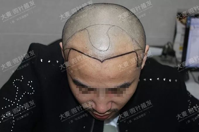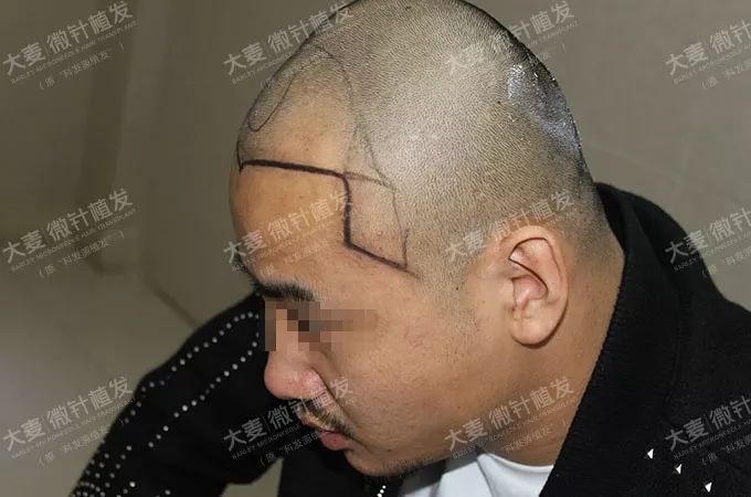 为了方便植发和取发,剃了头发,画出种植区,上鬓角的种植区域也画了出来。