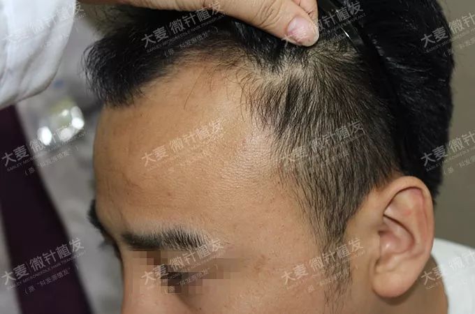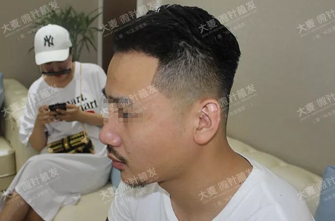 到了大麦,小王咨询了田医生,并告知医生,自己喜欢平一点的发际线,然后想要修饰一下上鬓角,不知道能不能做到。田医生看了看小王的头发,说没问题。