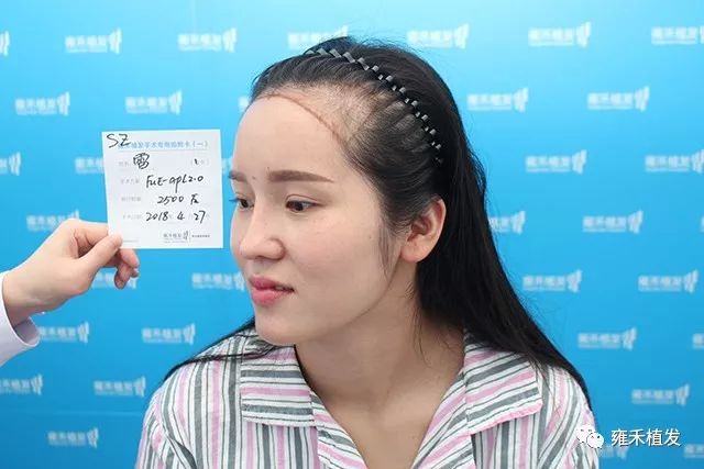 4月27日,深圳雍禾采用FUE-APL2.0为雷女士种植2550单位,含单根头发的毛囊单位950,含多根头发的毛囊单位1600,多根的头发量大比例多于单根的,说明发质很是好的。植发手术总计3小时多一点,局麻中进行的,无痛,手术室并有轻音乐伴随,整体是舒适的。女性植发更是艺术植发,前面头发干脆不理,种上新头发了,原有头发往前一梳遮盖种植区,后面理一些取发区,头发披散开来完全遮盖取发区,术后别人察觉不出来手术的样子。