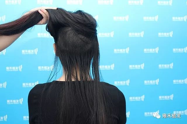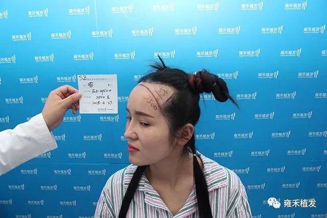 (扎起头发,确定最终的发际线和种植区。)