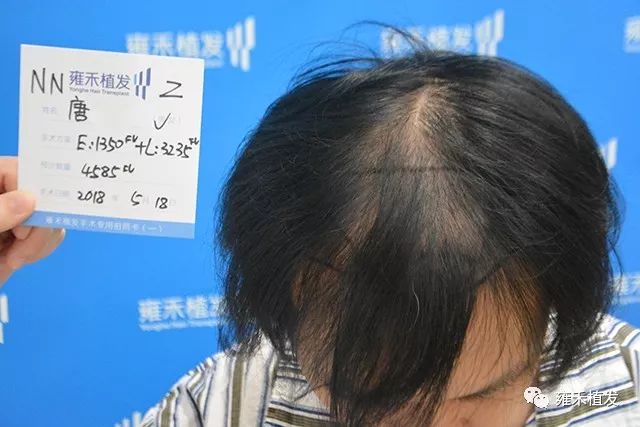2018年5月18日,南宁雍禾为唐先生植发4585单位,含单根头发的毛囊单位1535,含多根头发的毛囊单位3050,因为头顶整体稀疏,所以以LATTICE种植为主,L植发3235单位,而用FUE-APL2.0种植1350单位。4585单位,这可是大面积植发啊,当然对应的是大面积脱发。那么年轻的人,那么严重的脱发,真的该好好植发的。