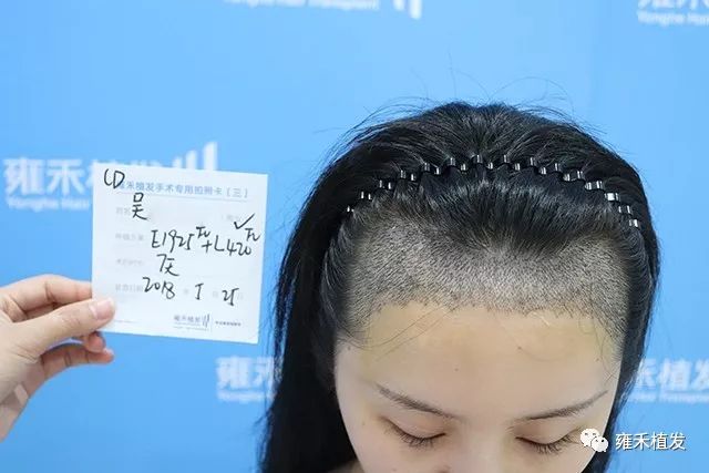 (发际线和种植区。将前面头发扎起来,术后散开来,就可以覆盖种植区,这样别人看不出来手术的样。)