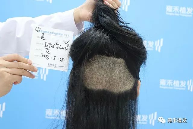 (后枕的取发区,也是上面的头发散开来,术后看不到手术的样子。雍禾植发,艺术植发。)