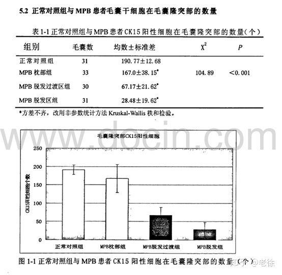 一篇研究脱发患者毛囊干细胞数量的文献指出,在单位区域内,毛囊的数量并没有变少,只是呈阳性的毛囊干细胞数量减少,换言之,毛囊依然存在,只不过毛囊干细胞的正常表达被影响了。