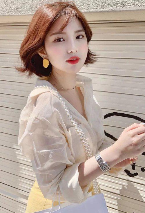 皙白皮肤的女生扎发,正侧面去欣赏是露出额头的梳发,拉直的头发是剪出层次度,左右头发是以层次度修剪,制作出别样风韵款式的短头发,正侧面去欣赏是如此迷人,热情奔放款式的发型设计。