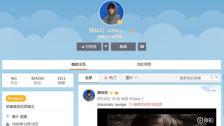 微博知名搞笑博主,B站超火up主,伦敦腔英语老“湿”,中英文化交流发言人…