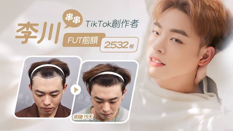 李川原本没意识到自己的发际线过高,然而之前曾拍过一支关于「人类高质量男性」的短影音,他把头发往后梳起来的油头造型,遭受许多网友的留言批评和酸言酸语,说他看起来很老、像大叔,甚至有人认为他不该再做偶像影片了,让李川惊觉自己的前额秃会影响他的个人形象,才开始正视这个问题。