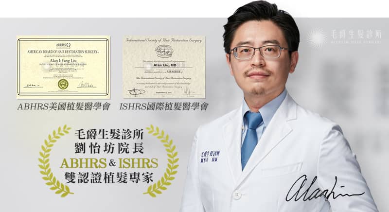 ▲刘怡坊院长是台湾少数获得美国植发医学会(ABHRS)及国际植发医学会(ISHRS)认证肯定的植发医师。