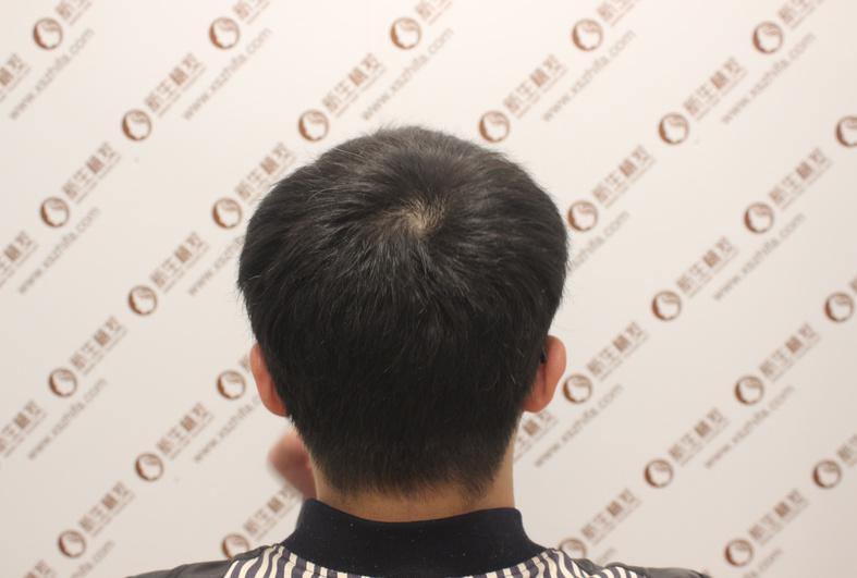 术后三个月,经历过脱落期的朱先生前额种植区已经正常生长,大额头消失不见了,后枕部也已经恢复自然。