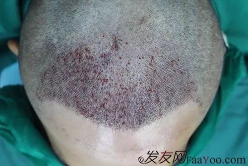 进手术室换上了隔离服,然后就是取发过程了!趴着,医生就在头的背后用器械进行头发提取,打麻药有点疼,但是都在人体承受能力之内的,所以也觉得没什么,打完麻药医生就会在我头的后枕部提取出2200个单位毛囊数,大约2小时不到吧,提取完毕,然后给你看提取出来的毛囊,并且告诉你数量,你要检查也可以,但我觉得没那个必要,既然选择相信,就不要去怀疑,就算怀疑,也没有什么用,整体看植发后的效果。