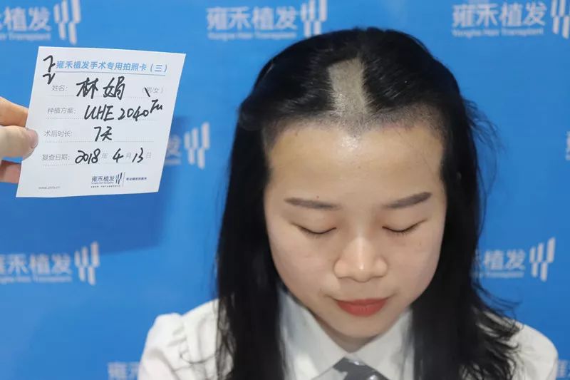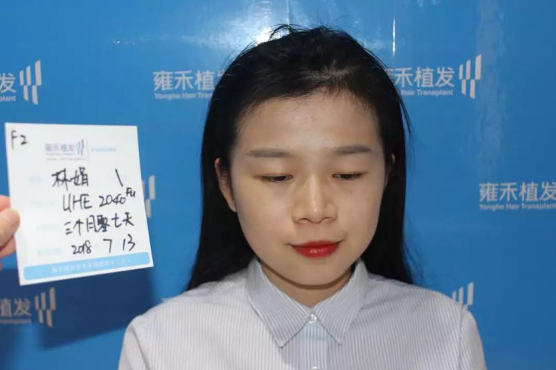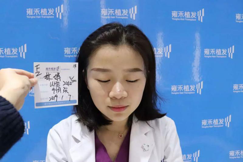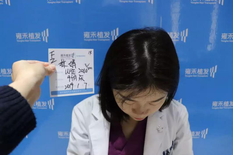 林医生主要是头顶稀疏,特别是中间分缝处都见头皮了,一般女士分缝处是一条细的白线,而她是宽的白线,好似一条较宽的河床,我相信所有爱美的女士有这样的烦恼都是很难受的。头发的瑕疵大大影响整体形象,这让本就是美女的林医生心慌不已,药物不大管用,假发是假的治疗,植发是唯一有效的解决办法。刚好有在雍禾上班的便利条件,所以这一次林娟医生变患者,她要大大方方的美。