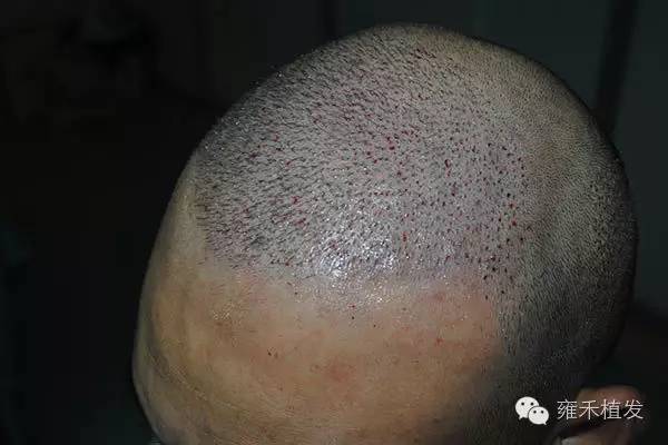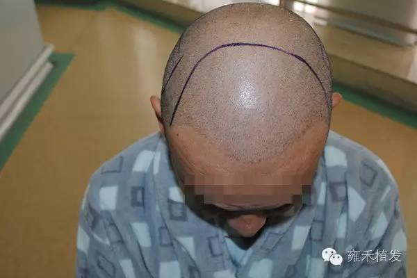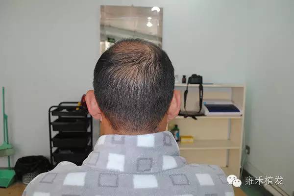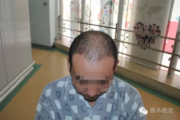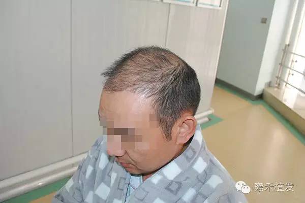 (王先生术前的头顶,一片白茫茫,头发稀疏的很啦。)