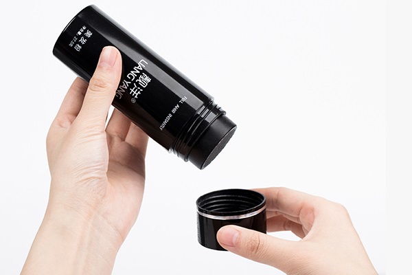 2。打开罐子, 在头上7.5到15公分高的地方,对准要使用的地方,轻轻摇晃生发纤维,让纤维滑落到头发上。然后用手轻拍,帮助纤维散开附着。