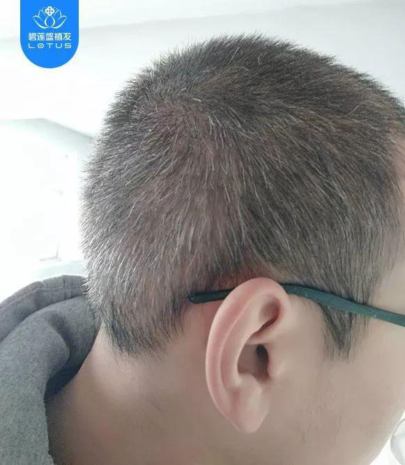 还没有进入明显的脱落期,此时可以看到,种植的头发生长方向和密度良好,后枕部取发区密度均匀,头发整体已经有所改观。