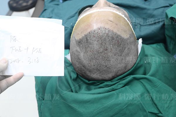 而根据陈老师对效果的需求,医生制定的方案为他制定了一套植发方案:FUE(无痕植发)单位 PSE(精密植发)技术组合,就是其中没有头发的位置进行正常的种植,而稀疏处或与原生发衔接处,必须通过精密植发,才能做到无缝衔接。预估种植单位为4400。