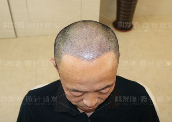 ▲术后40天。进入术后的“脱发期”阶段,老头发要换新头发啦